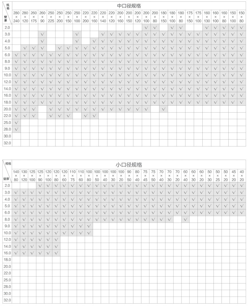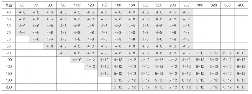 常規(guī)尺寸規(guī)格表